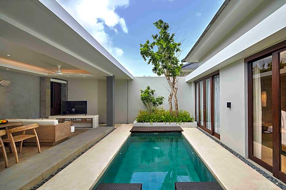 Cross Bali Breakers is a five-star retreat in Jimbaran, where two outdoor infinity pools invite sun-soaked moments with an adults-only vibe. Some villas feature private pools, adding a personal splash of luxury to the stay. A water park (extra charges), spa/wellness packages, and the on-site Point Break restaurant—serving Chinese, Indonesian, Italian, seafood, local, and international flavors in a modern, romantic setting—round out the experience.